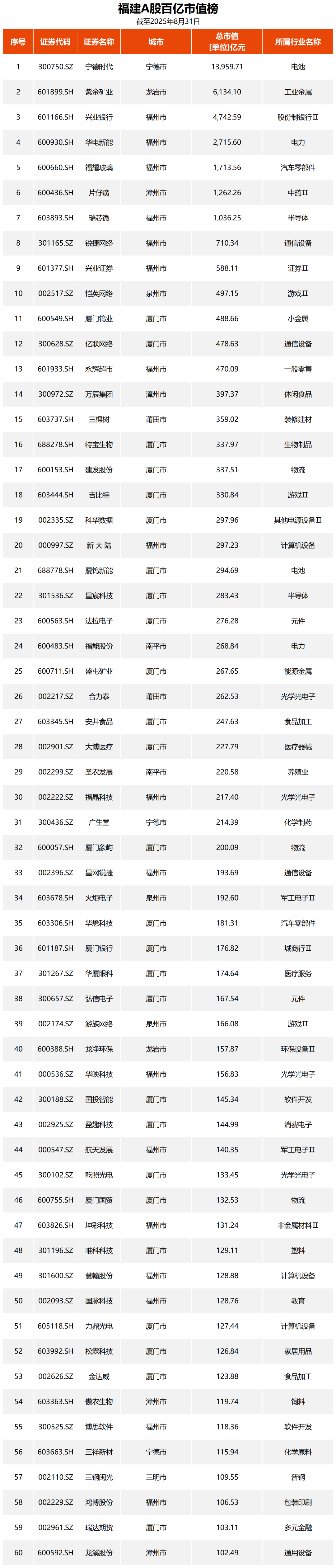 截至8月31日,福建A股上市公司173家總市值超4.78萬億元。其中上交所主板61家,深交所主板53家,深交所創業板47家,上交所科創板8家,北交所4家。