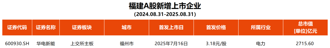 今年以來,福建A股上市隊伍僅新添加一位新成員,來自福州的華電新能(600930.SH)也發布了首份半年報。華電新能(600930.SH)在7月16日正式登陸上海證券交易所主板,華電新能發行價為3.18元/股,超額配售選擇權全額行使后的發行股數為57.14億股。