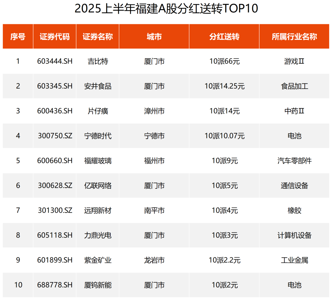 截至目前,福建轄內共有27家A股上市公司宣告2025年中期分紅,共擬分紅165.01億元。其中,分紅最慷慨的依然是吉比特,而從派發總額來看,紫金礦業分紅最多。